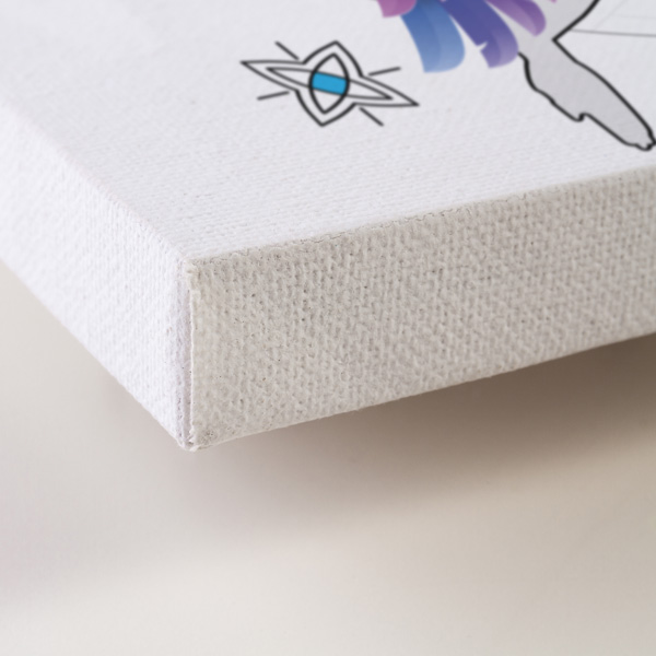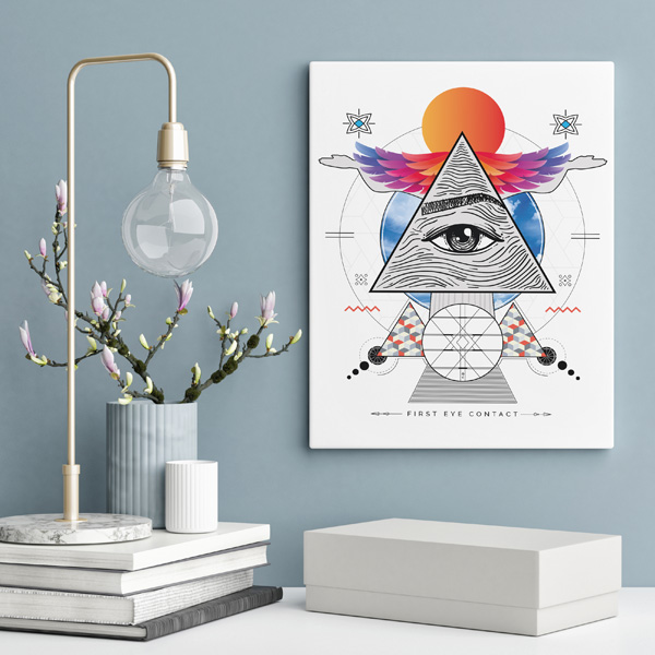 La statua rappresenta il Cristo nell’atto di un ampio abbraccio aperto all’umanità. Varie forme e geometrie in stile Arte Dèco circondano la grafica, mentre le piume con diverse sfumature sottolineano l’apertura della braccia del Cristo che è li fermo, ma è come se stesse prendendo il volo.