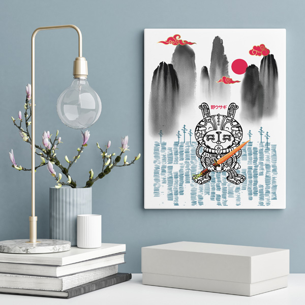Una guida magica caratterizzata dall’abilità di viaggiare tra i mondi, di saltare tra le oscure ombre dei monti che si stendono sulla realtà e la bianca luce che le avvolge, abile e lineare nella comunicazione. La lepre sceglie con attenzione le introverse anime da proteggere aiutandole ad aprirsi verso il prossimo, e io l’arma di cui dotarla katana/carota per affrontare la sua missione.