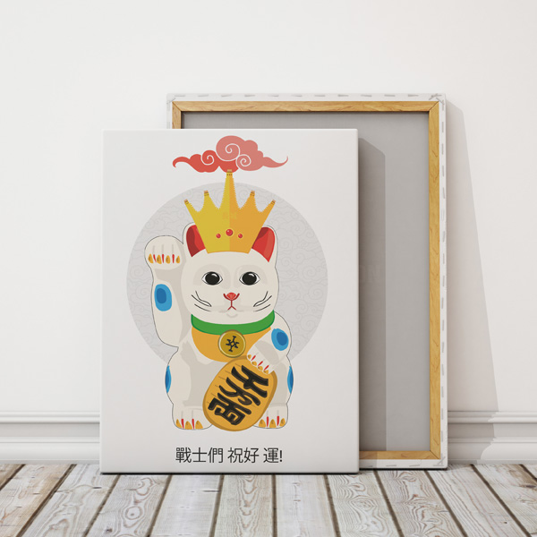 Il suo compito principale era quello di difendere il paese dalle invasioni. Maneki Neko soggetto della mia grafica rappresenta il gatto portafortuna con in testa un corona che rappresenta la grande Muraglia. Bella e simbolica ma al contempo troppo lunga e con troppi punti deboli per poterla rendere così efficace strategicamente. Sotto il gatto è presente una frase in cinese che dice “Buona fortuna, soldato.”